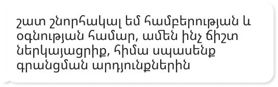 Շատ շնորհակալ եմ Move2Armenia Business-ին հաշվապահական և իրավաբանական ծառայությունների համար: Նրանց մասնագետների թիմը մեծ աջակցություն ցուցաբերեց իմ փոքր բիզնեսը ՀՀ-ում գրանցելու և բոլոր օրենքները պահպանելու հարցում: Ես բարձր եմ գնահատում նրանց մասնագիտական գիտելիքները, հուսալիությունը և արդյունավետությունը: Խորհուրդ եմ տալիս օգտվել նրանց ծառայություններից:
